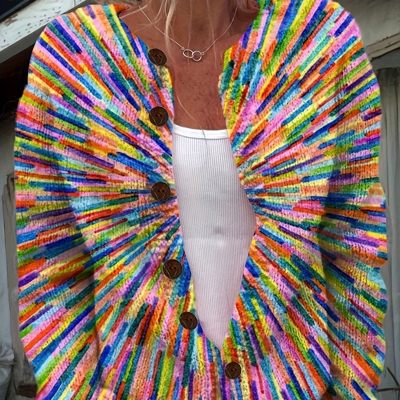 Chrissy-Colourful 3D Print Cardigan